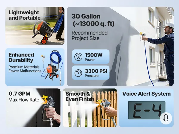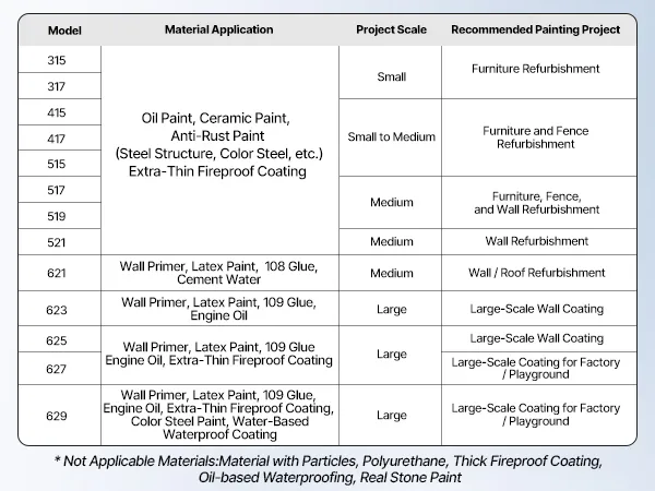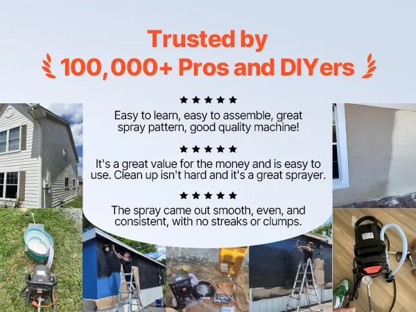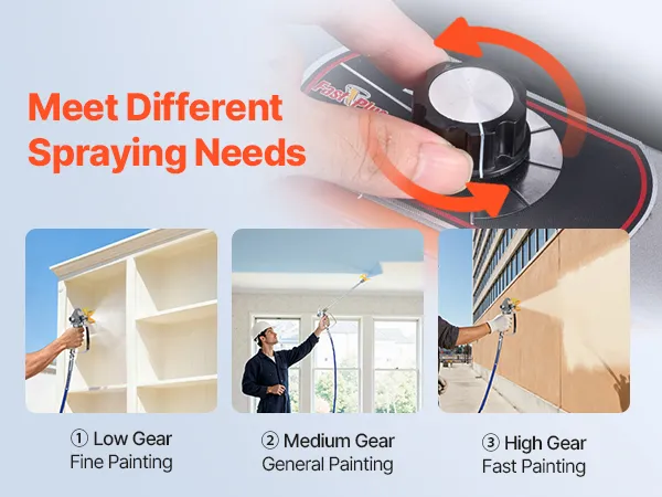 A2: Testare sempre il processo di spruzzatura prima di iniziare: tenere la pistola a spruzzo a 30 cm dalla superficie. Trovare la velocità giusta: troppo veloce se lo spruzzo è troppo sottile, troppo lento se è troppo denso. Impostare la pressione il più bassa possibile senza creare una "coda" nella parte superiore dello spruzzo.