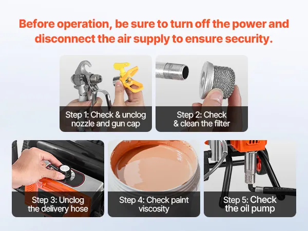 A1: 1. Indossare occhiali protettivi, un respiratore, guanti e indumenti protettivi. 2. Preparare la vernice: mescolare sempre accuratamente la vernice e filtrarla per rimuovere eventuali particelle che potrebbero ostruire l'ugello.