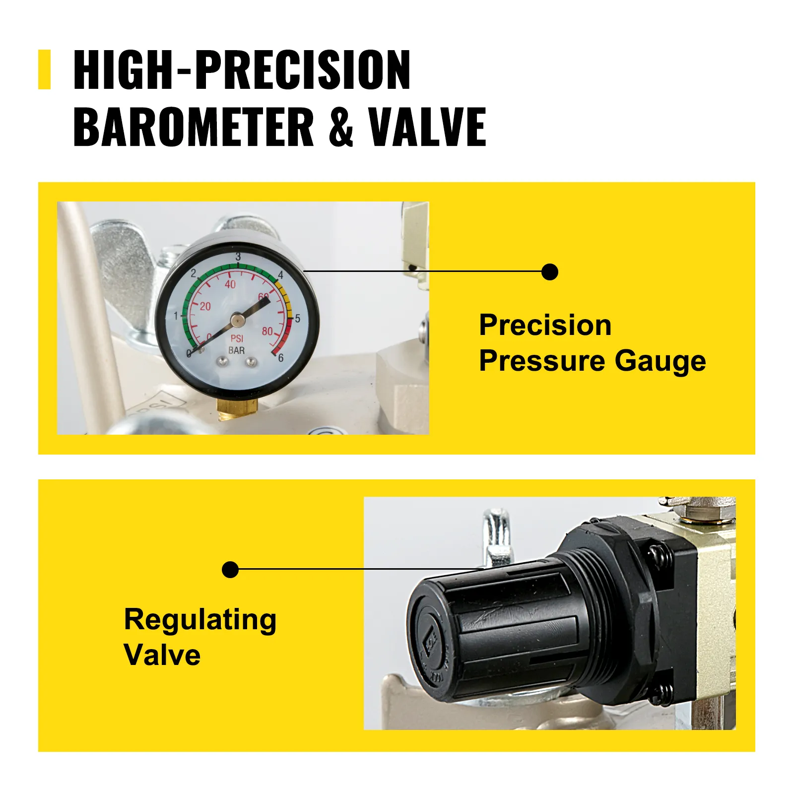 Il barometro di facile lettura mostra i cambiamenti di pressione in modo tempestivo; puoi modificare la pressione di lavoro ruotando la valvola, molto facile.