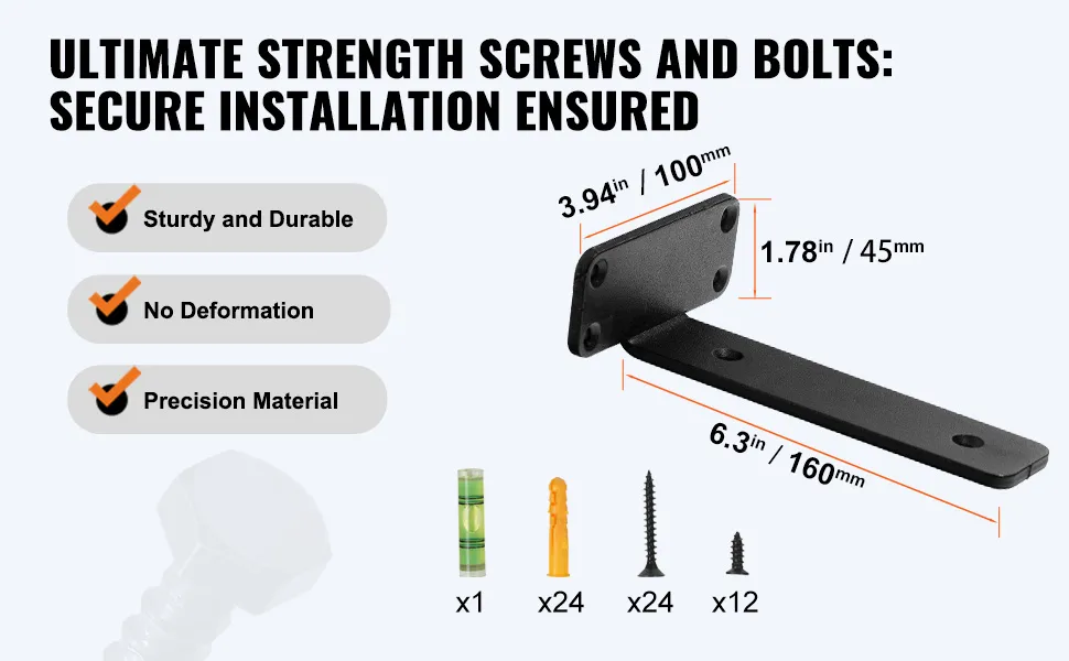 L'installazione delle staffe per mensole VEVOR è semplice. Puoi usare viti standard per montarle in modo sicuro. Le staffe sono preassemblate, risparmiando tempo e fatica. Puoi installare facilmente qualsiasi utensile avanzato, anche se non ne hai. Questo le rende una scelta comoda per i progetti fai da te. Devi solo assicurarti che siano squadrate e dritte sulla superficie. Grazie a questa facilità di installazione, le tue mensole vengono montate rapidamente. Una volta installate, forniscono un effetto unico, aggiungendo un tocco elegante al tuo spazio.