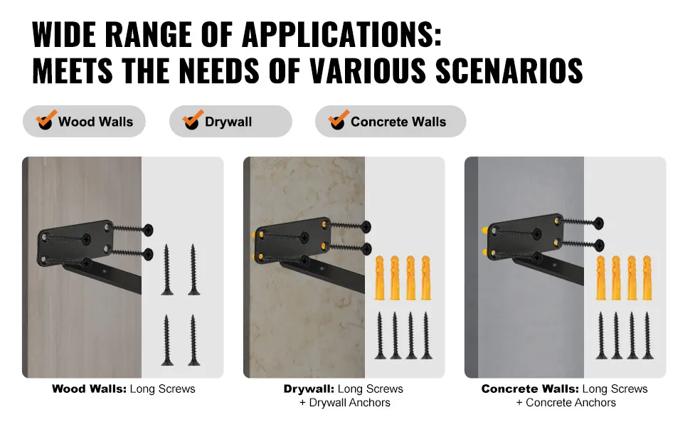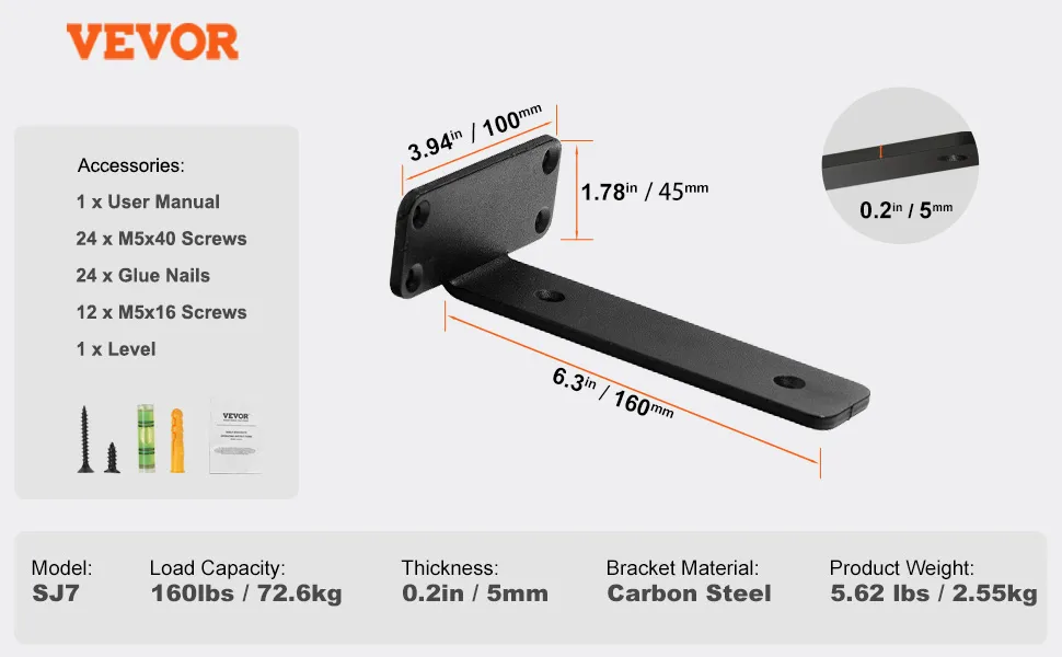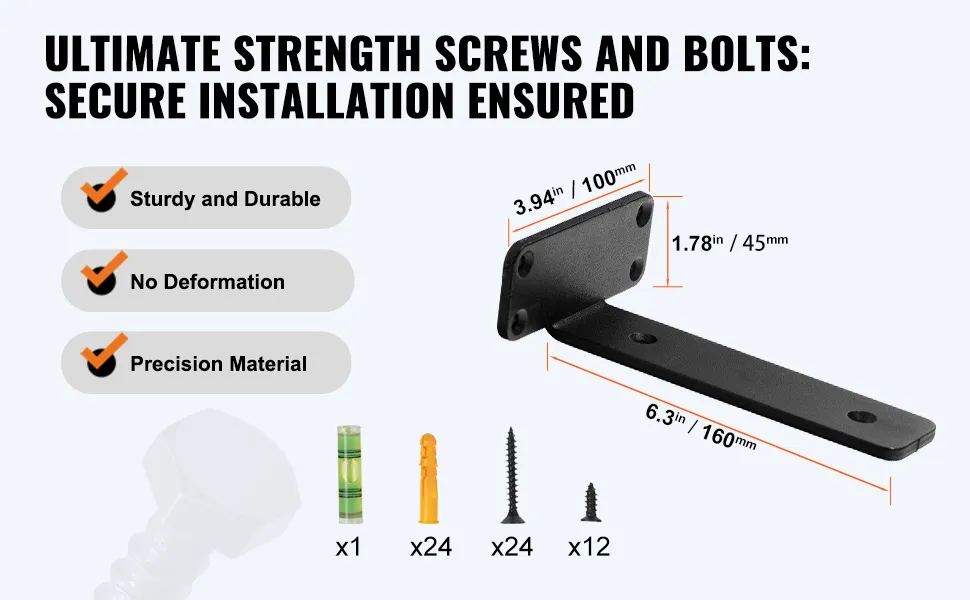 Le staffe per mensole VEVOR hanno un'elevata capacità di carico di 160 libbre. Ciò garantisce che i tuoi ripiani siano sempre sicuri e protetti. Puoi fidarti che sosterranno oggetti pesanti senza alcun problema. Il loro design robusto fornisce un supporto affidabile. Non c'è bisogno di preoccuparsi che i tuoi ripiani crollino. Sono ideali per sostenere oggetti di valore o pesanti, soprattutto quando si hanno carichi elevati. La loro elevata capacità di carico li rende anche versatili. Puoi usarli in vari contesti e attività, rendendoli adatti a chiunque abbia bisogno di un supporto per mensole forte e sicuro. La loro capacità di carico garantisce tranquillità. Quindi, conta su queste staffe per tenere i tuoi oggetti al sicuro.