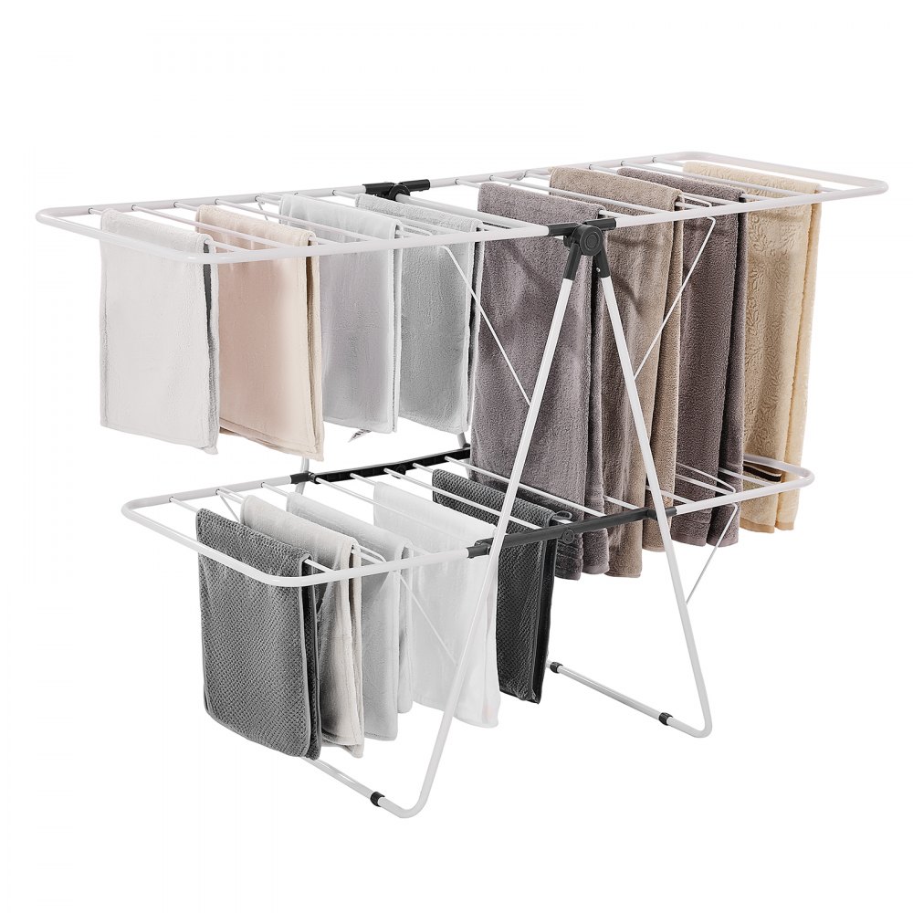VEVOR Clothes Airer (2-Tier & Foldable) with Sock Clips & 31 Drying Bars, Height-Adjustable Metal Drying Rack, Freestanding & Space-Saving Clothes Hanger for Laundry Rooms, Balconies VEVOR Clothes Airer (2-Tier & Foldable) with Sock Clips & 31 Drying Bars, Height-Adjustable Metal Drying Rack, Freestanding & Space-Saving Clothes Hanger for Laundry Rooms, Balconies