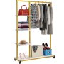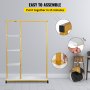 Il nostro appendiabiti a rotelle fornisce ulteriore spazio per gli indumenti per organizzare i tuoi vestiti e accessori. L'oro lucido e il ripiano bianco rendono questo elegante appendiabiti un pezzo decorativo per negozi di abbigliamento, boutique o attività di vendita al dettaglio. È perfetto per mostrare abiti chic in modo attraente ed elegante.