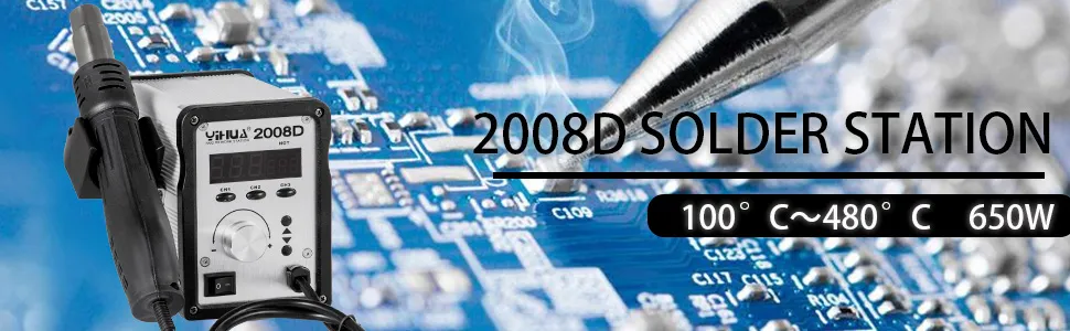 La stazione di rilavorazione 2008D è progettata per dissaldare senza piombo. Utilizza la più recente tecnologia di controllo del programma PID del microprocessore per calcolare e produrre con precisione la giusta temperatura per l'uscita della pistola ad aria. La rapida regolazione della temperatura, l'uscita costante dell'aria fanno la scelta migliore per le esigenze della tua stazione di lavoro a caldo.