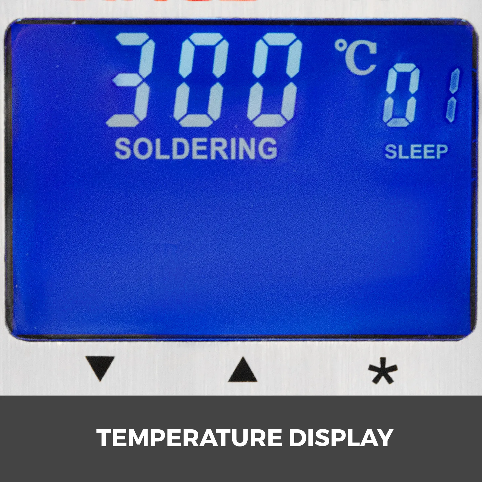 Viene visualizzata la temperatura della pistola ad aria compressa / ferro che ti rende più chiaro durante l'uso. Adotta spray antistatici superficiali, pannello in alluminio spazzolato, resistente all'umidità e anti-invecchiamento.