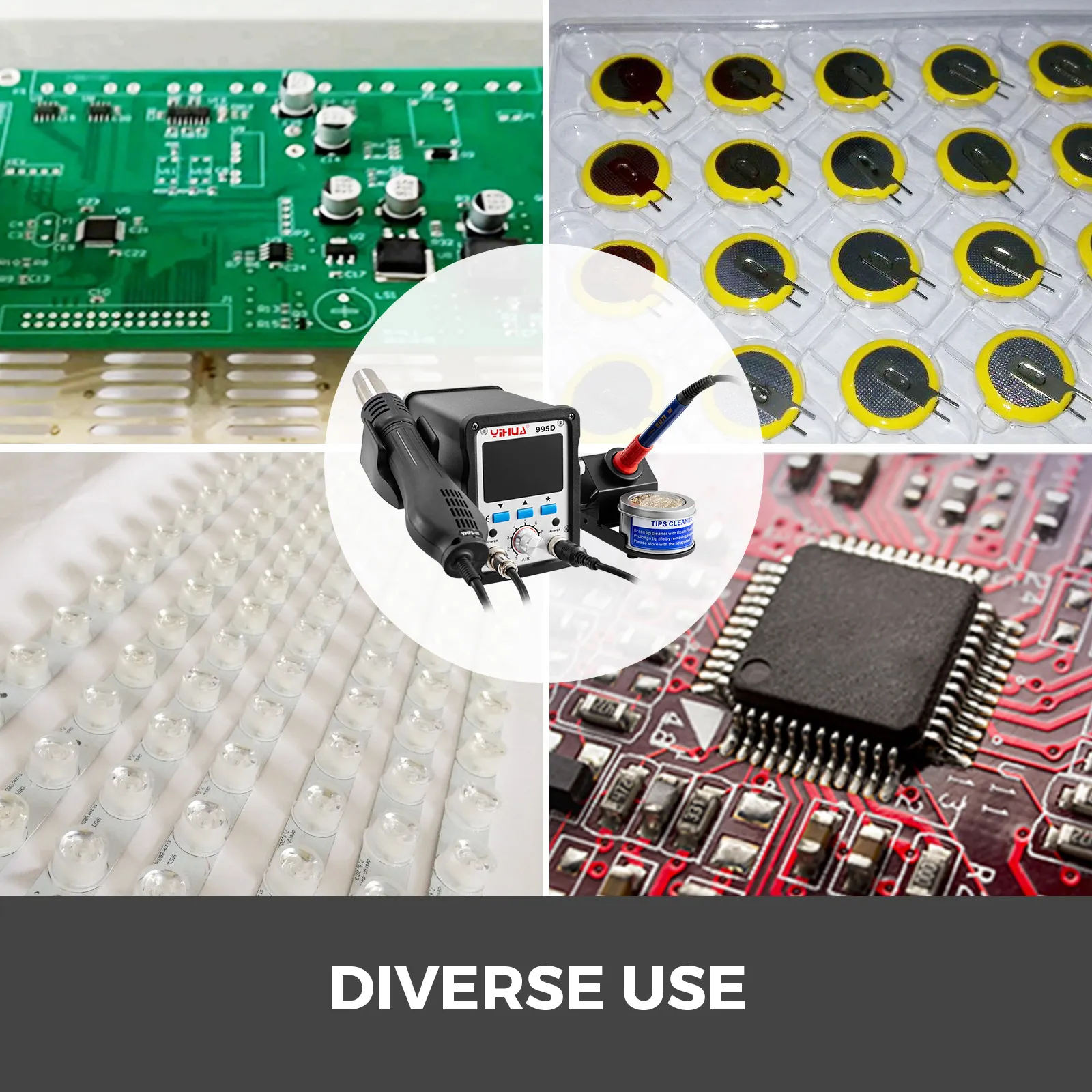 Progettato per dissaldare SOIC, CHIP, QFP, PLCC, BGA e altri componenti sensibili alla temperatura, strumento essenziale per la riparazione di telefoni cellulari, riparazione di laptop o saldatura di circuiti stampati.