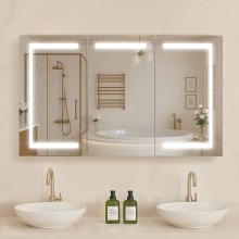 VEVOR Mirror Cabinet, Mirrored Medicine Cabinet (1017 x 135 x 647 mm) for Bathrooms with 3 Doors & 3 Mirrors, Built-in and Wall Mounting, Aluminum Frame, Bathroom Cabinet
