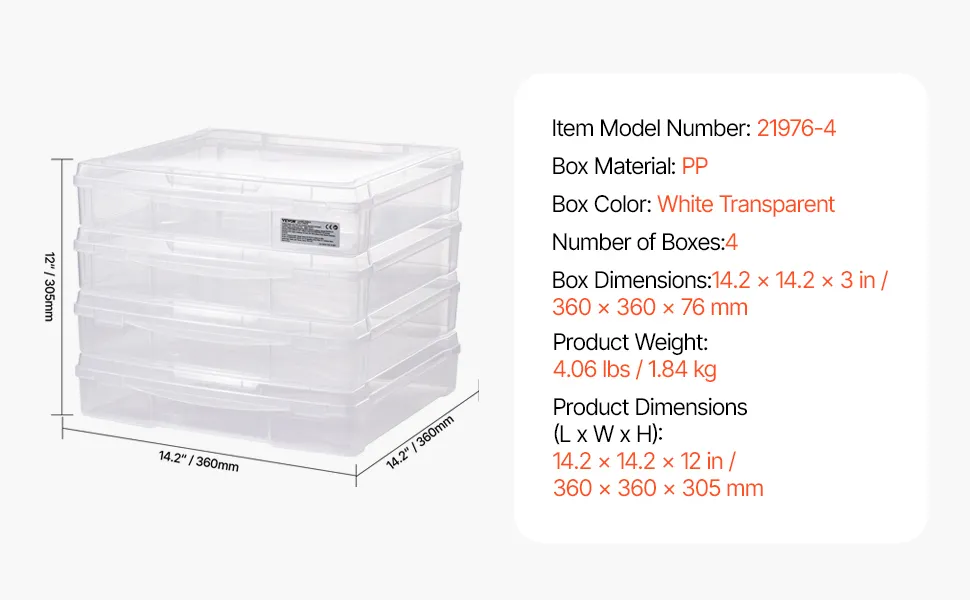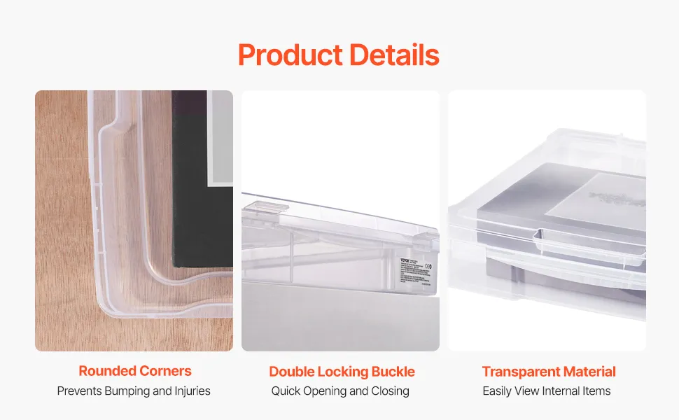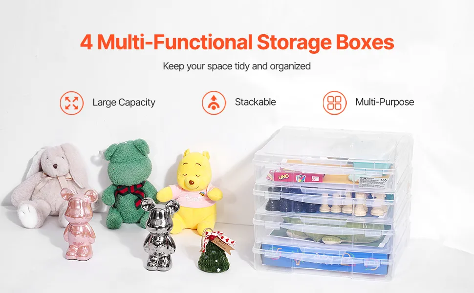 VEVOR Scatole per Giochi da Tavolo, 4 Pezzi, Custodia Trasparente Multiuso per Documenti con Angoli Arrotondati e Doppie Chiusure, per Utensili Essenziali per Ufficio, Articoli per l'Artigianato, Arti