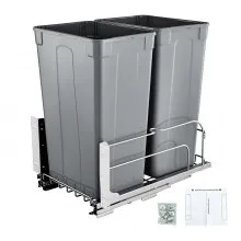 VEVOR Pattumiera Estraibile, ca. 39,8 L x 2, Doppi Contenitori per Rifiuti da Cucina Sottotop, Cestino per la Raccolta Differenziata con Sistema Scorrevole, Estensione Completa e Maniglia Grigio