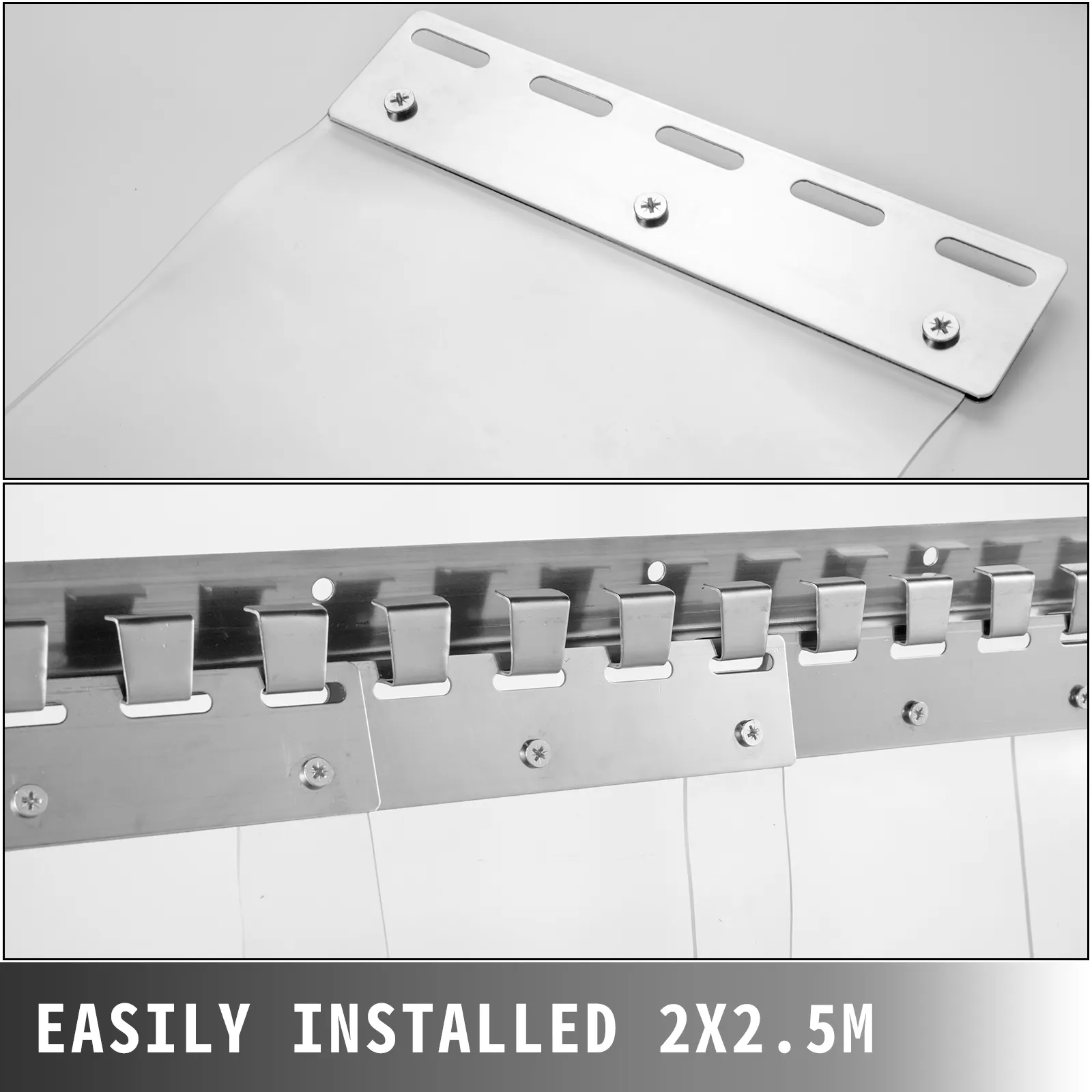 • 【FACILITÀ D'INSTALLAZIONE 2 x 2,5 M】 - La tenda a strisce di plastica viene fornita con 8 strisce, facilmente installabili. Accessori: tutto l'hardware necessario per il montaggio fa al caso tuo. C'è una sovrapposizione di 5,4 cm per ogni striscia. La larghezza totale installata: 2 m. Altezza: 2,5 m.