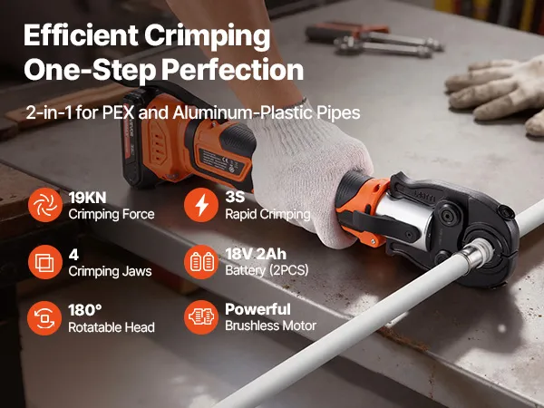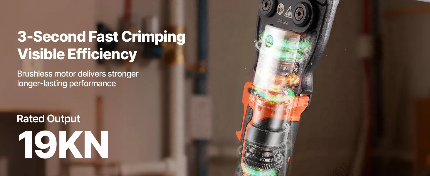 Alimentata da un motore brushless ad alta efficienza, questa crimpatrice per tubi in PEX e alluminio-plastica eroga una forza di 19 kN per crimpature fluide e a prova di perdite per progetti idraulici residenziali e tubazioni industriali.