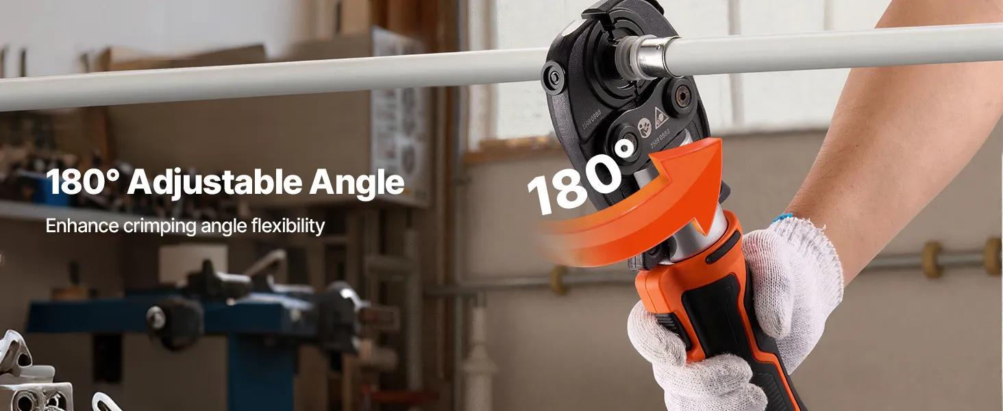Ruota facilmente la testa della pressa fino a 180° per adattarla a spazi ristretti o angolati. Ottieni un posizionamento flessibile e una crimpatura precisa anche in aree difficili da raggiungere.