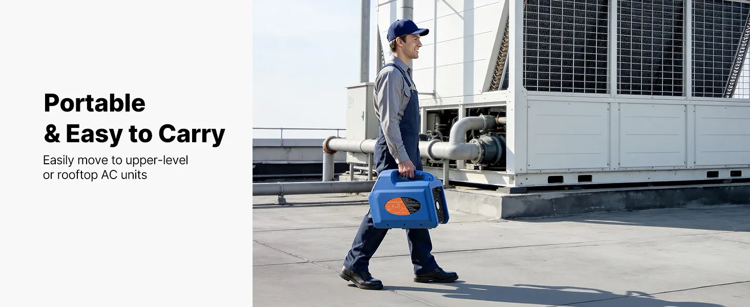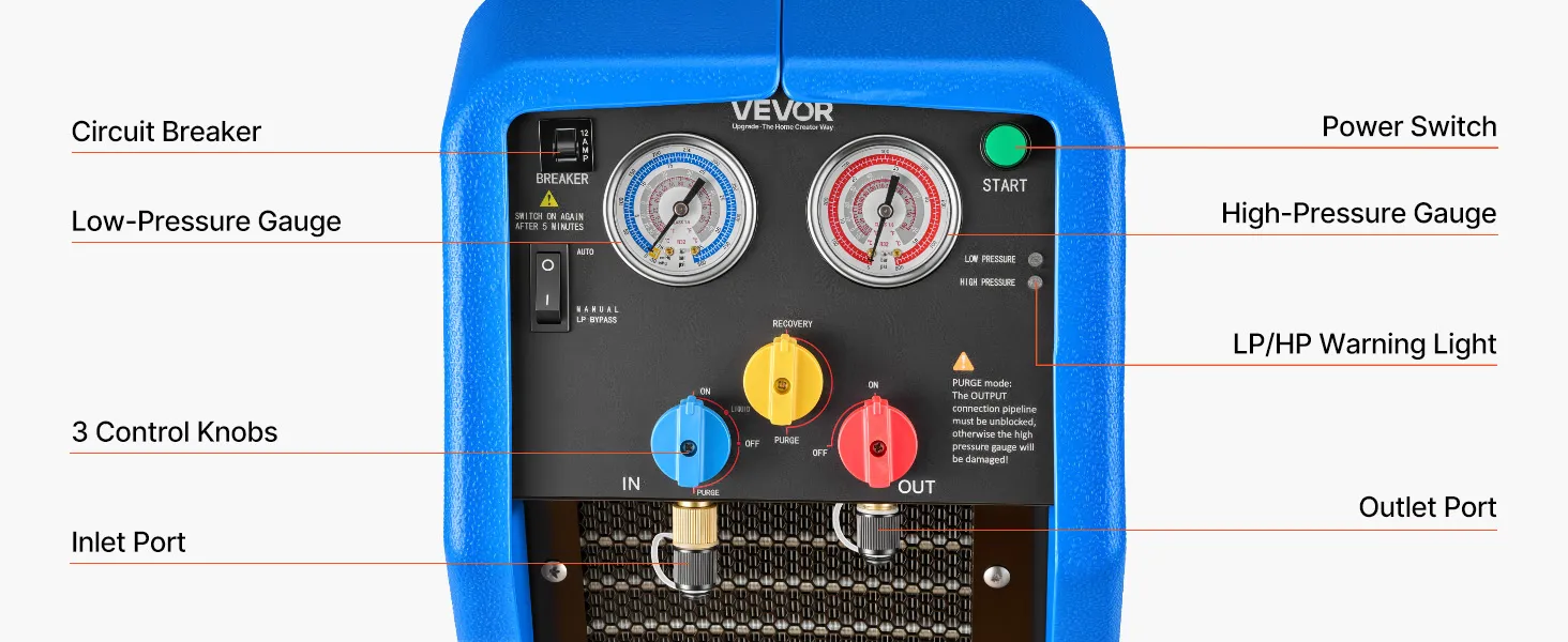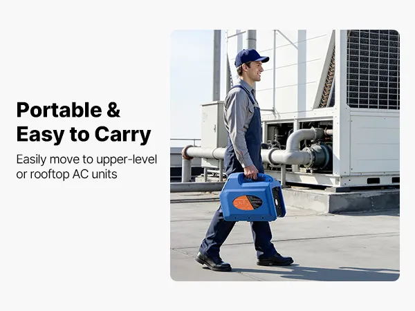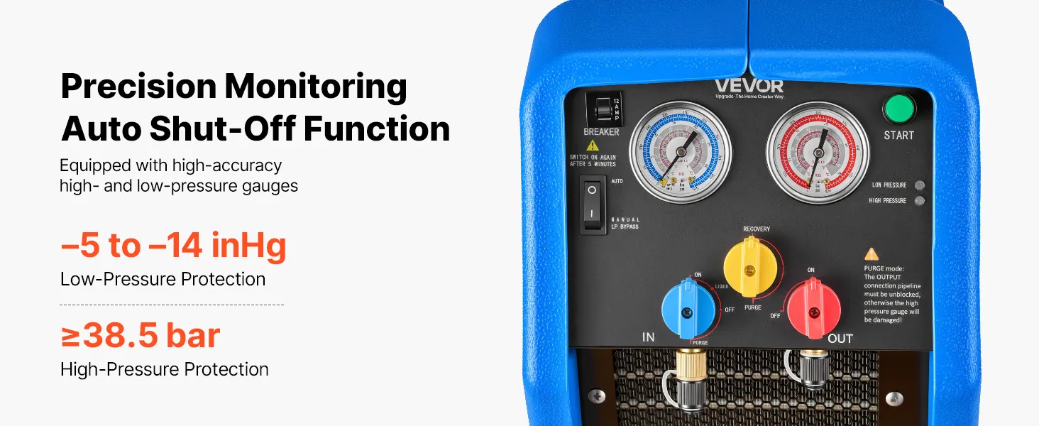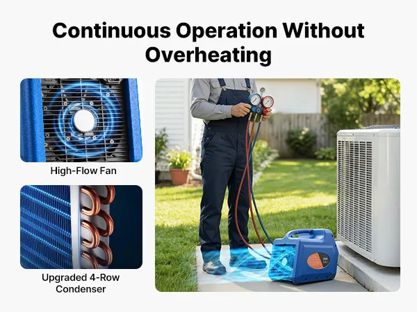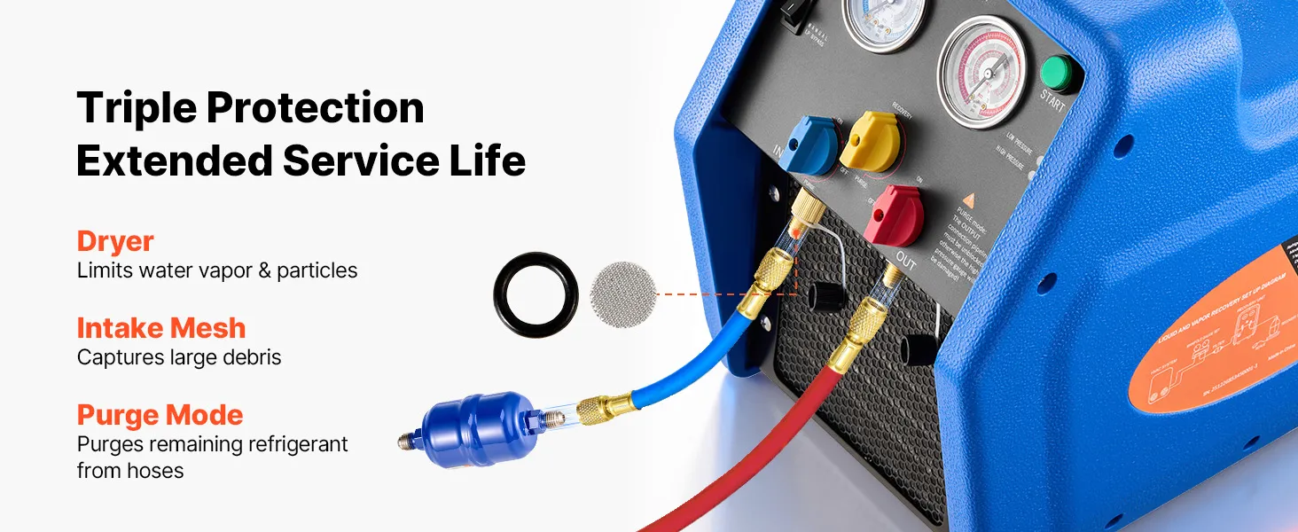 Recupero efficiente 3,7 kg/min: Questa unità portatile di recupero refrigerante a due cilindri da 1 HP è progettata per il recupero efficiente di refrigeranti liquidi e gassosi. Con una velocità di recupero del liquido fino a 3,7 kg/min, riduce significativamente i tempi di funzionamento