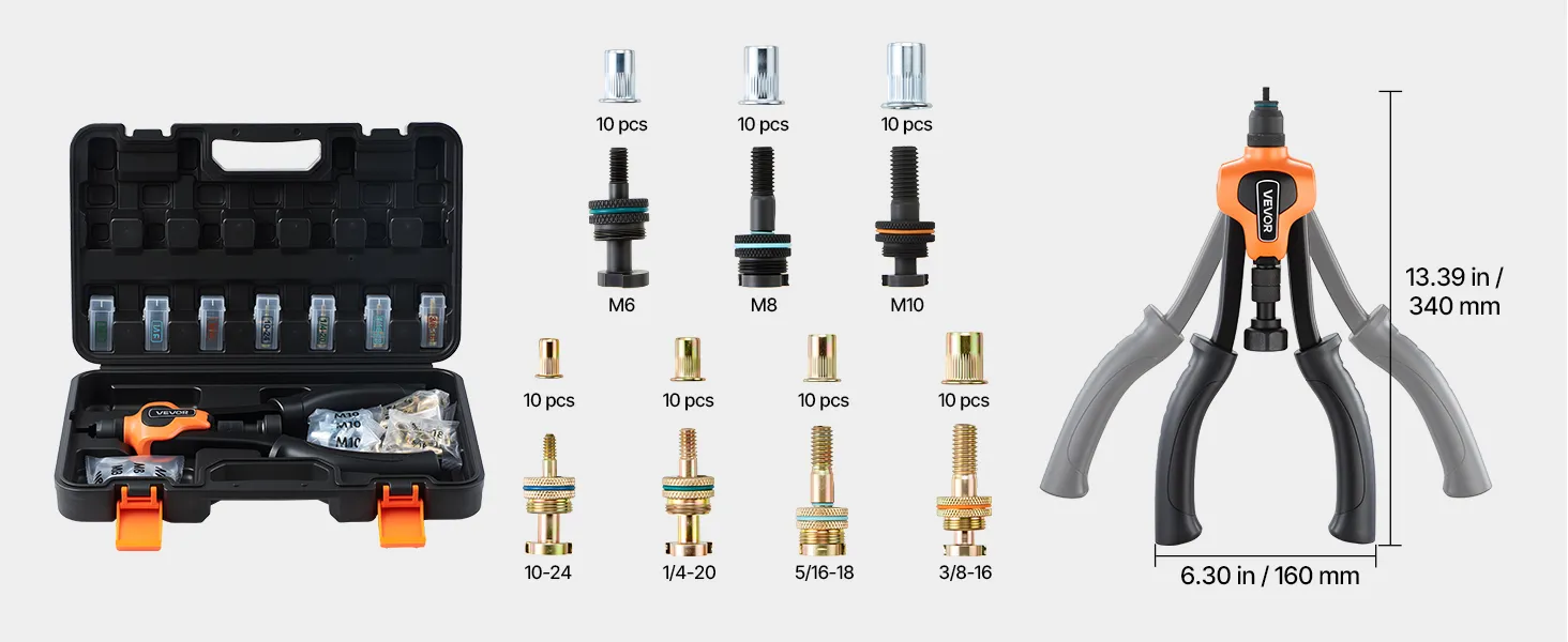Dalle riparazioni domestiche ai progetti di officina, questo kit completo di utensili per rivetti è proprio quello che ti serve: organizzato, affidabile e pronto all'uso.