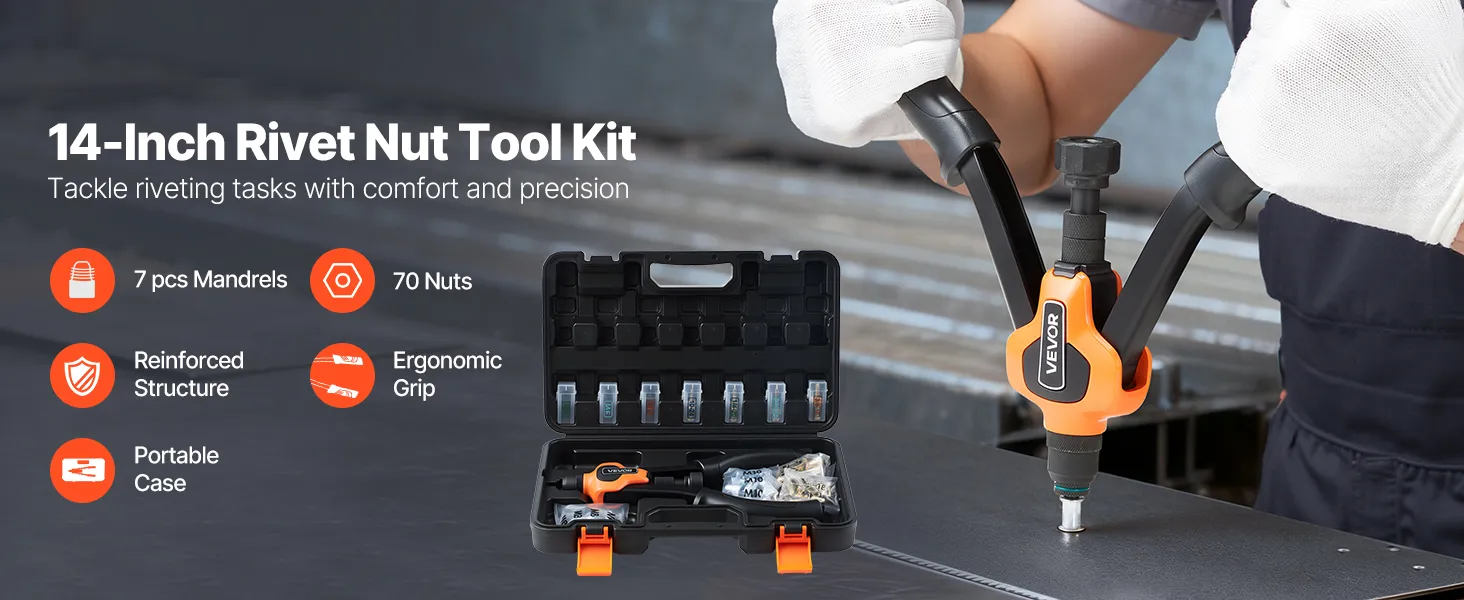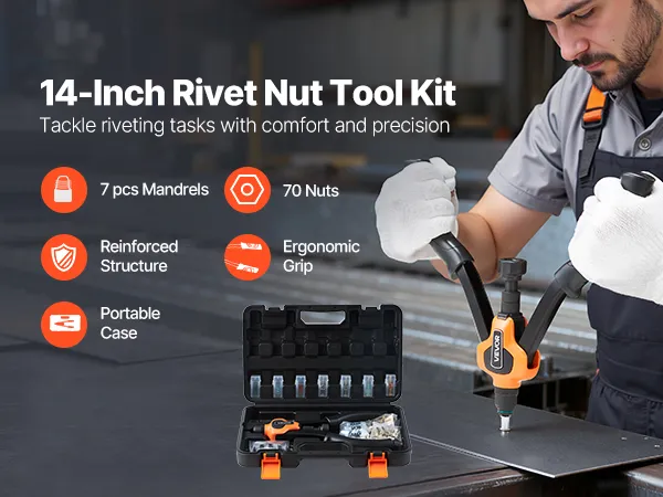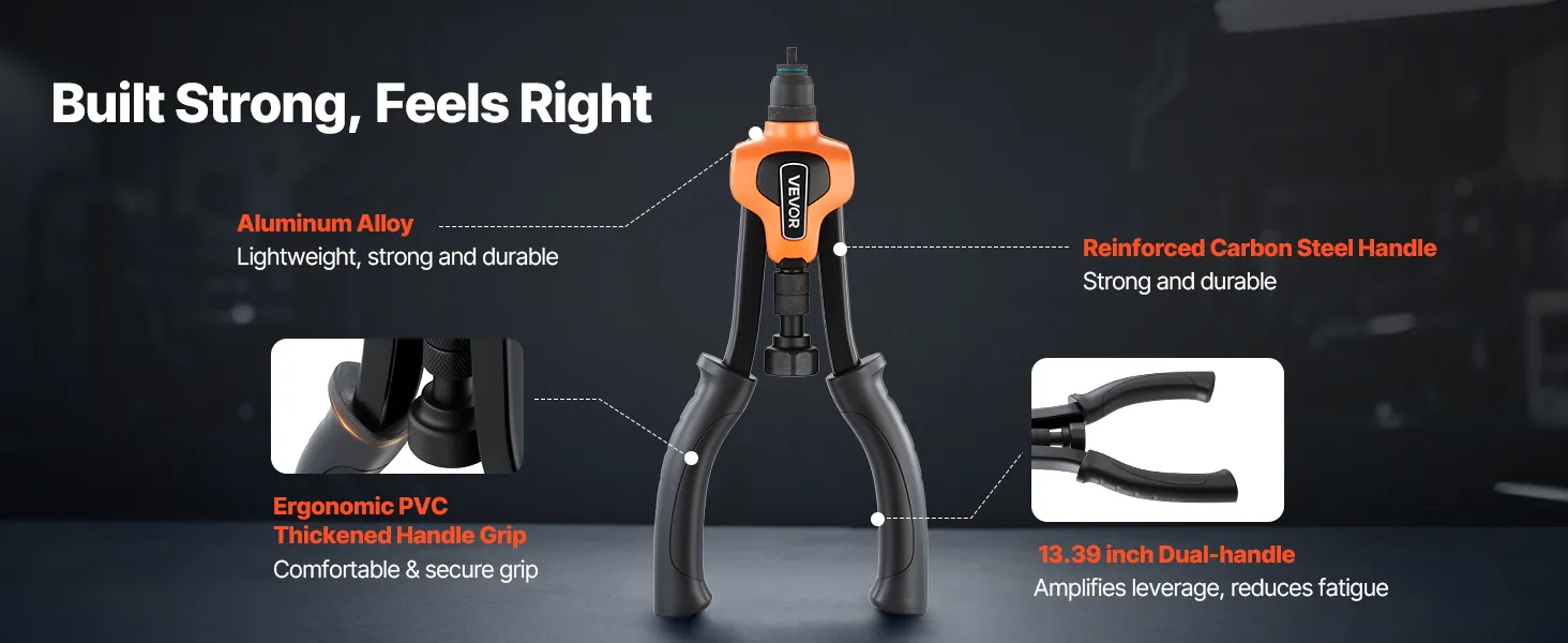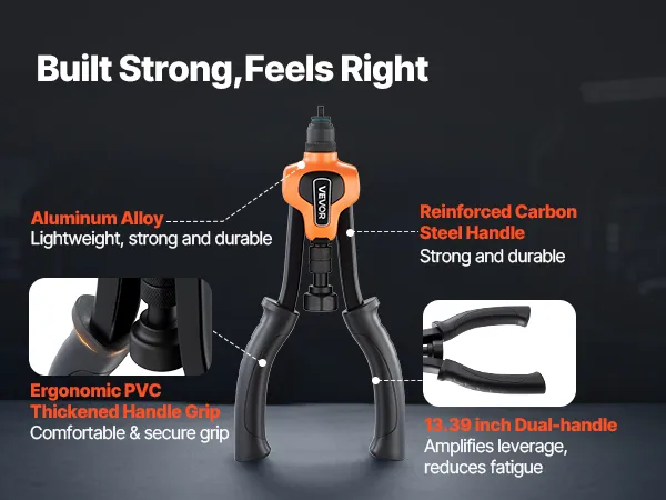 Progettato per la potenza, progettato per il comfort: il kit di utensili per rivetti rivettati da 14 pollici aumenta leva, mentre il mandrino in 35CrMo aggiunge resistenza a lungo termine. Le impugnature in PVC ispessito offrono una presa morbida