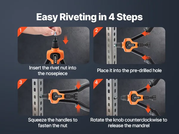 Dalla foratura al fissaggio, questo utensile per rivetti filettati rende ogni azione intuitiva: non è richiesta alcuna esperienza, ma solo risultati fluidi e soddisfacenti ogni volta.