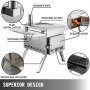 Stufa a legna da campeggio VEVOR realizzata in acciaio inox 304, vista laterale.