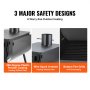 Three safety features: The 550-degree powder coating prevents odors during heating and cooking. The spark arrestor prevents sparks from flying out. The lower fire grate prevents overheating and potential fire hazards.