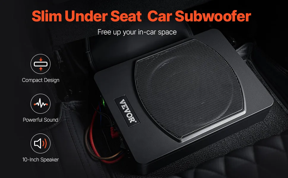 Questo subwoofer da 10" sotto il sedile è un must per gli appassionati di car audio, che offre bassi potenti e un suono nitido, risparmiando spazio con il suo profilo sottile.