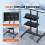 Dual Tray: Enhance your entertainment experience with our height-adjustable, swiveling mobile TV stand with two trays. It effortlessly supports up to 30 lbs (13.6 kg) and provides space for your laptop, game console, speakers, or other AV equipment.