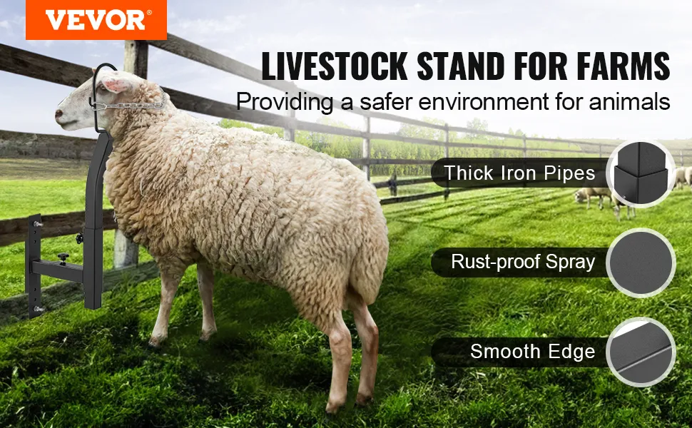 Il supporto per la tosatura del bestiame VEVOR è realizzato in ferro di alta qualità. Ciò ne garantisce la durevolezza e l'uso a lungo termine. I materiali sono resistenti all'usura. Pertanto, questo supporto può sopportare un uso intenso senza compromettere le prestazioni. È progettato per durare per più stagioni. Costruzione durevole: il nostro supporto per la tosatura del bestiame è abbastanza robusto da supportare l'uso quotidiano a tempo indeterminato. I materiali sono facili da pulire e manutenere, mantenendo il supporto in buone condizioni. Di conseguenza, rimane in condizioni ottimali per le tue esigenze di cura del bestiame.