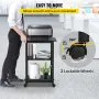 VEVOR Supporto per Stampante in Acciaio e Truciolare, Mobiletto Nero a 3 Ripiani Regolabili da 40+15+15 kg con 4 Ruote, Carrello Mutifunzionale da 48x39x77 cm per Ufficio Soggiorno Cucina Biblioteca