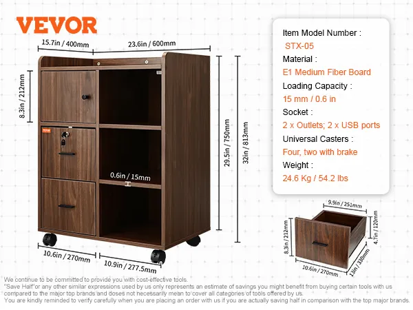 Il supporto per stampante di VEVOR aiuta non solo di organizzare meglio lo spazio, anche migliora l'efficienza di lavoro. Con un'ampia superficie, cassetti con serratura, prese di corrente integrate e ruote universali, offre una mantenimento per lo spazio di lavoro.