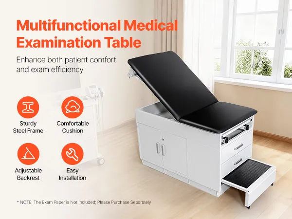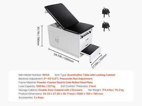 Armadietto portaoggetti con serratura: per uno stoccaggio sicuro e organizzato, questo lettino per visita include un armadietto portaoggetti con serratura e 2 cassetti. Offre uno spazio sicuro per documenti e forniture mediche