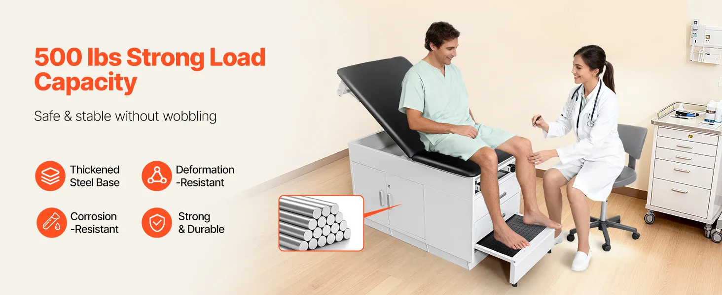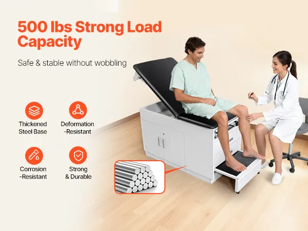 Durevole e stabile: costruito con un telaio in acciaio rinforzato e rivestimento in polvere antiruggine, tavolo per visite mediche con un armadietto bloccabile supporta fino a 500 libbre, garantendo una durata a lungo termine e un utilizzo stabile