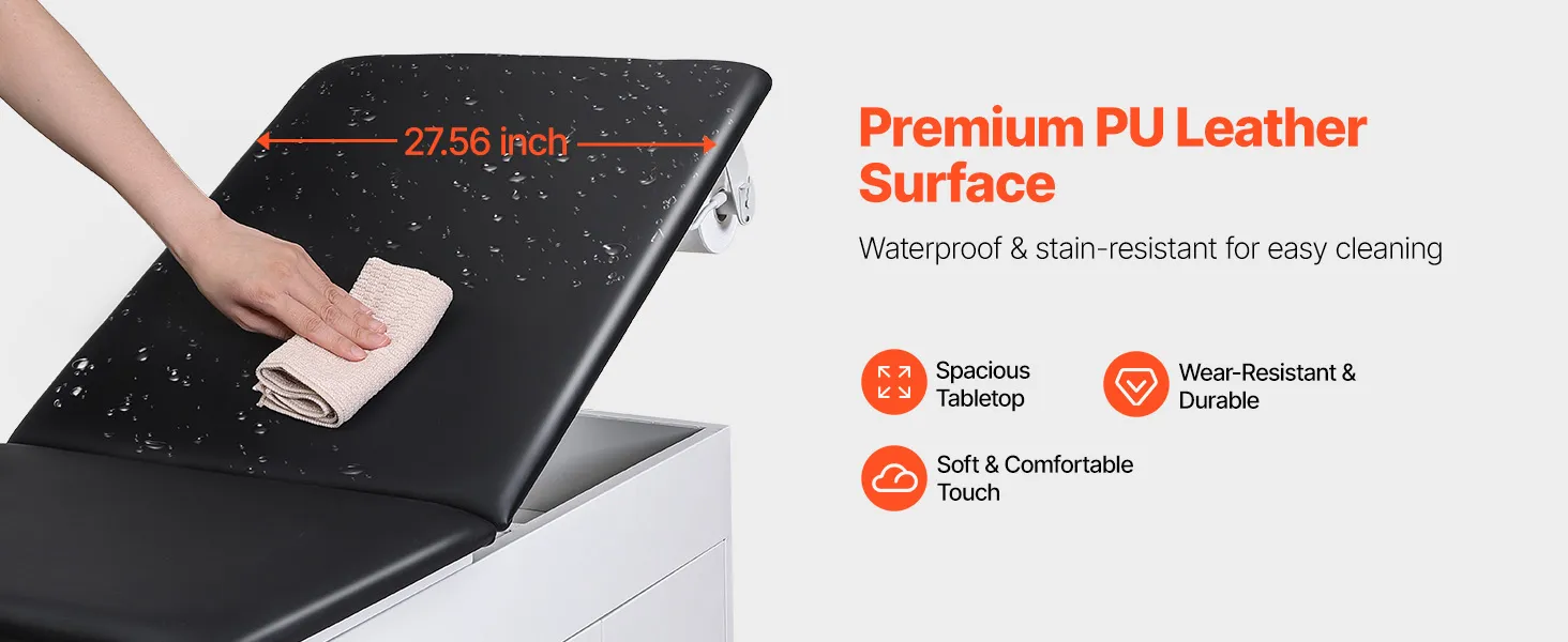 Il nostro lettino per visita medica è dotato di un cuscino in schiuma ad alta resilienza da 5 cm. Offre un supporto e un comfort eccezionali durante le visite, mentre la superficie in PU impermeabile è impermeabile e facile da pulire, per una manutenzione senza sforzo.