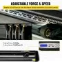 The vinyl cutter is equipped with a backlit display for enhanced clarity and brightness. The cutting process can be controlled by digitally adjusting force and speed. Cutting speed: 10-800 mm/s; cutting force: 10-500 g.