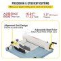 Taglierina industriale per carta VEVOR che mostra taglio fluido e struttura in acciaio su un tavolo.