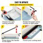 Manuale d'uso della taglierina industriale per carta VEVOR: scegli la posizione, premi la maniglia, taglia, finisci.