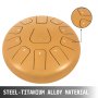 Il tamburo di lingua è realizzato in lega di acciaio e titanio. Sebbene sia semplice nella struttura, il suono è molto piacevole ed è una specie di suono simile ai toni del Buddha. Ciò semplifica l'apprendimento e offre una gamma più ampia di suoni. Anche i principianti possono facilmente padroneggiare e suonare musica meravigliosa.