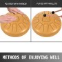 Il tamburo per linguetta in acciaio è realizzato a mano da artigiani professionisti. Un totale di 11 toni consi pungere di scale pentatoniche, con numerosi spartiti musicali, anche i principianti possono riprodurre musica estremamente piacevole dal punteggio.