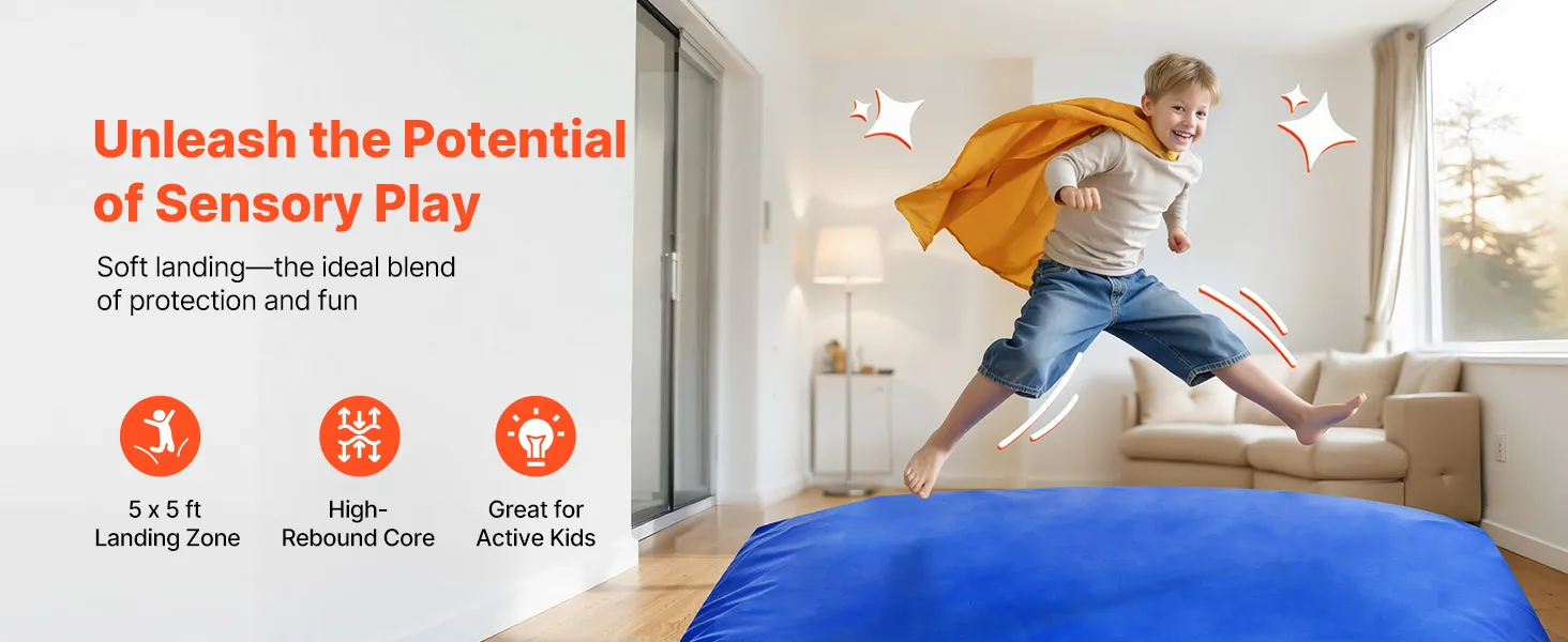 VEVOR Materassino Sensoriale per Bambini con Blocchi di Schiuma e Fodera Lavabile, Tappeto Sensoriale per Bambini Grande Zona di Atterraggio in Schiuma, Materassino da Casa per Ginnastica Allenamento