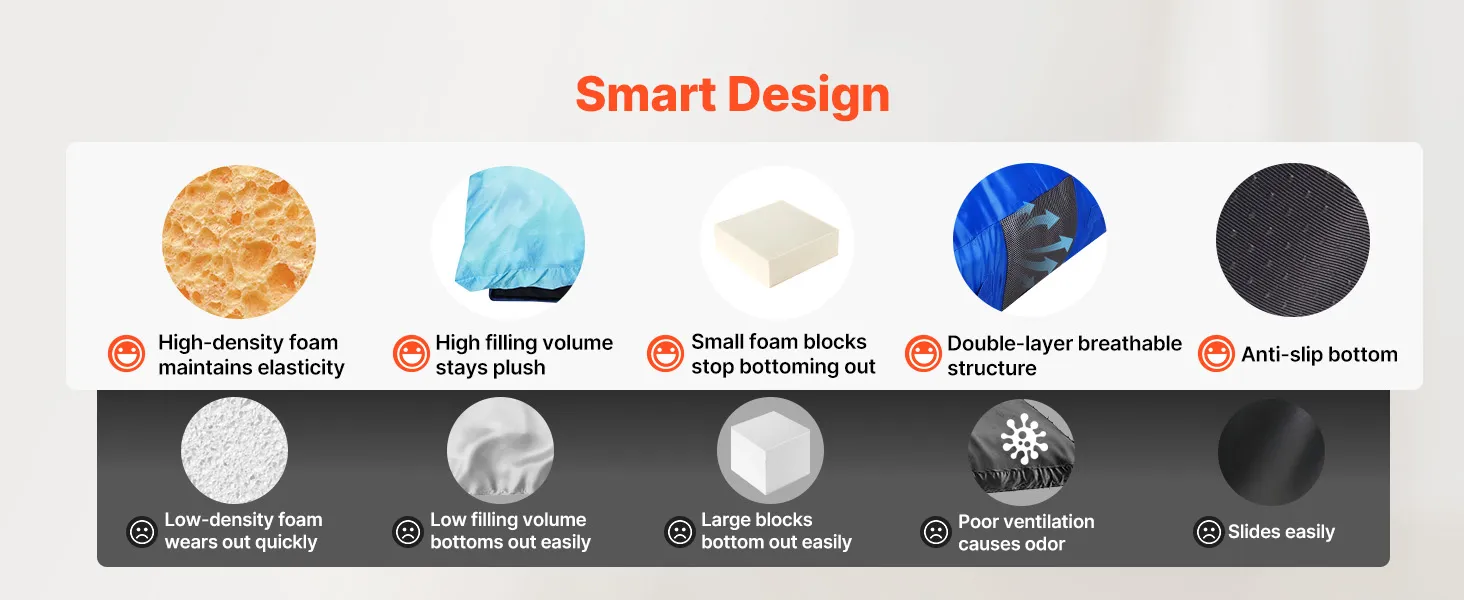 Imbottitura in schiuma ad alta densità: il materassino sensoriale per bambini include una fodera a doppio strato: velluto per il tatto sensoriale, fodera in nylon per l'impermeabilità e base antiscivolo. È imbottito con 15 kg di morbida schiuma ad alta densità