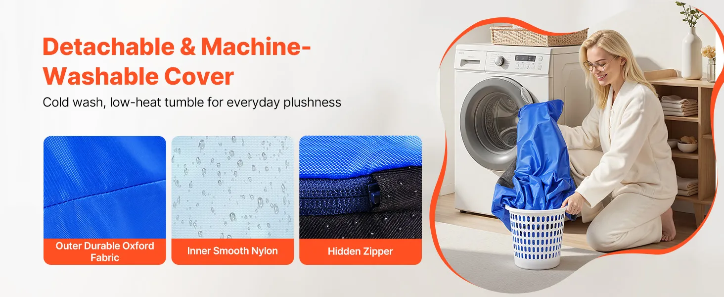 Facile da pulire e mantenere: questo materassino antiurto per bambini è lavabile in lavatrice. La fodera esterna staccabile si apre con una cerniera per un lavaggio delicato in lavatrice, mentre la fodera interna in nylon resiste a fuoriuscite di liquidi