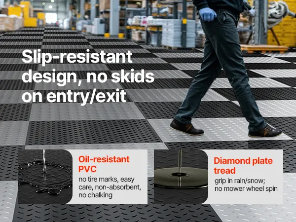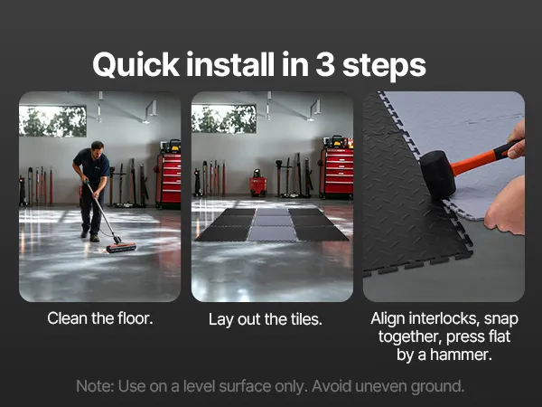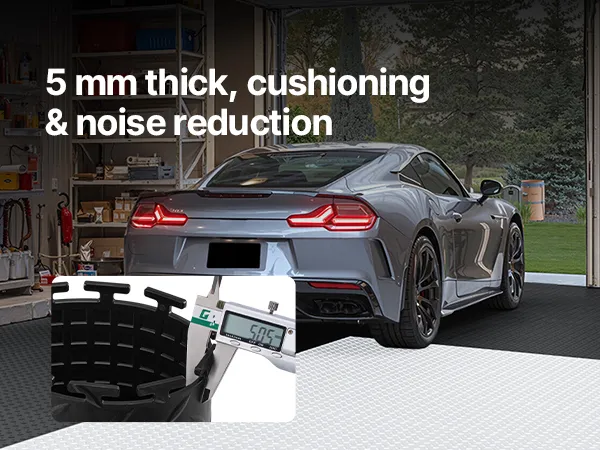 Costruzione robusta: la superficie della piastra diamantata aumenta l'attrito per ridurre gli spostamenti. Le piastrelle per pavimenti da garage in PVC da 5 mm di spessore resistono allo strappo, all'acqua e all'olio