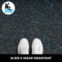 Adotta un'eccellente gomma vulcanizzata riciclata e ha una macchia blu EPDM al 10% aggiunta sulla superficie. È odore debole, non tossico e morbido da camminare.