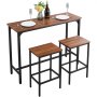 VEVOR Set Mobili da Bar Tavolo Sedie da Cucina 3 Pezzi con 2 Sgabelli da Bar e Bordi Arrotondati, Tavolo da Pranzo da 120 x 40 x 90 cm, Marrone Rustico e Nero, Adatto per Ufficio, Minibar