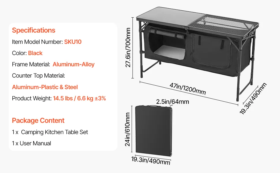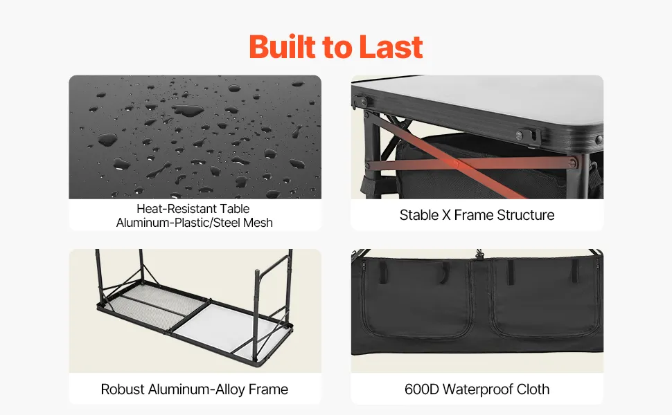 Pronto per l'avventura: ideale per campeggio, viaggi in camper, picnic, barbecue in giardino e serate di osservazione delle stelle, questo tavolo da cucina da campeggio offre una superficie affidabile per i tuoi oggetti essenziali, elevando qualsiasi esperienza all'aria aperta