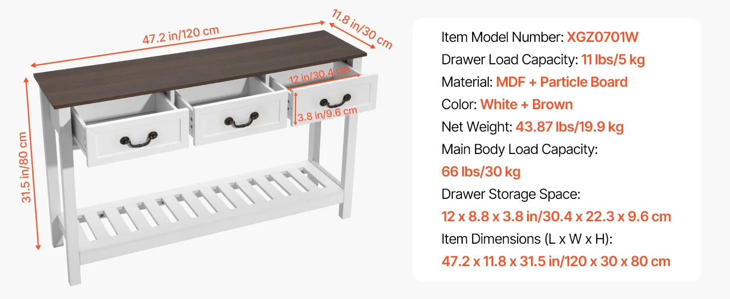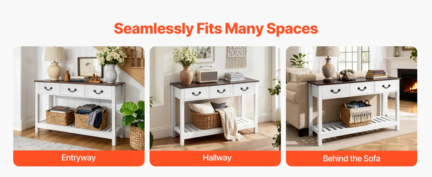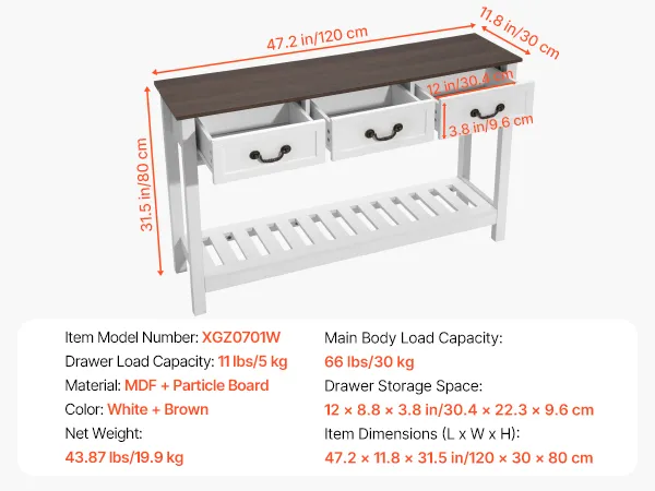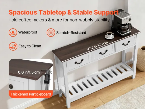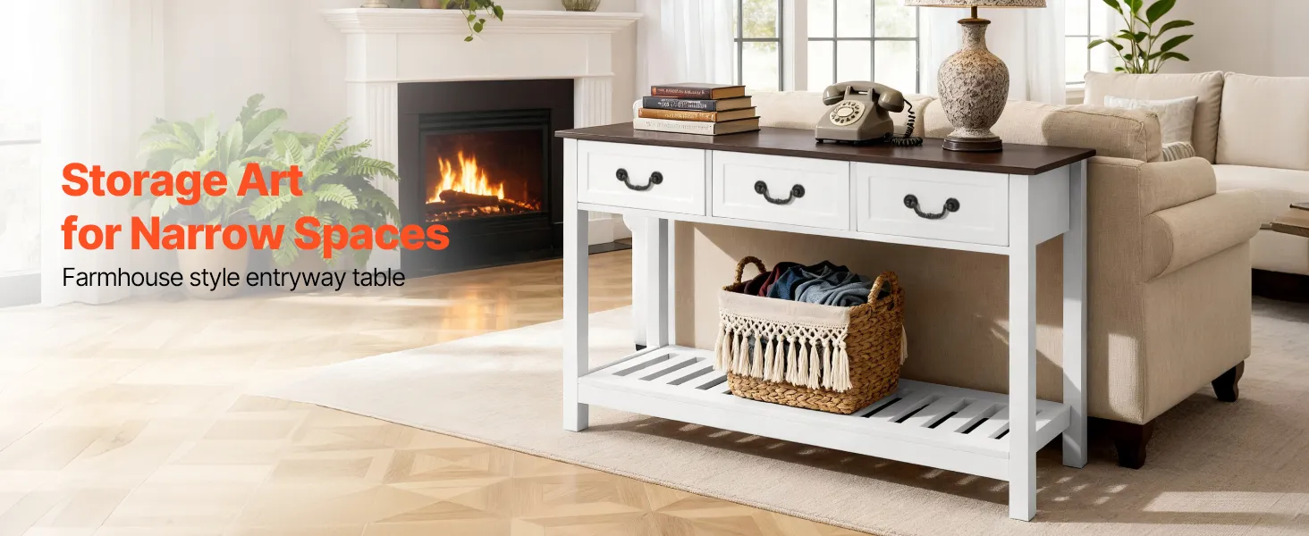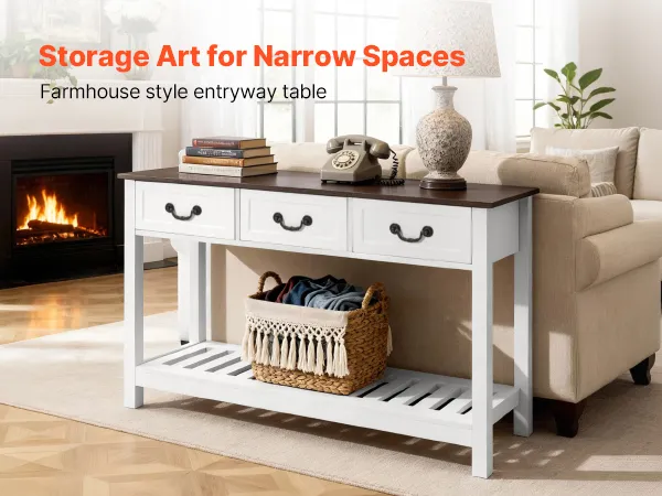 VEVOR Tavolino Console da Ingresso con Cassetti e Vano Portaoggetti, Rettangolare Stretto in MDF e Truciolato per Corridoio, Camera da Letto, Soggiorno, Ingresso, 120 x 30 x 80 cm Bianco