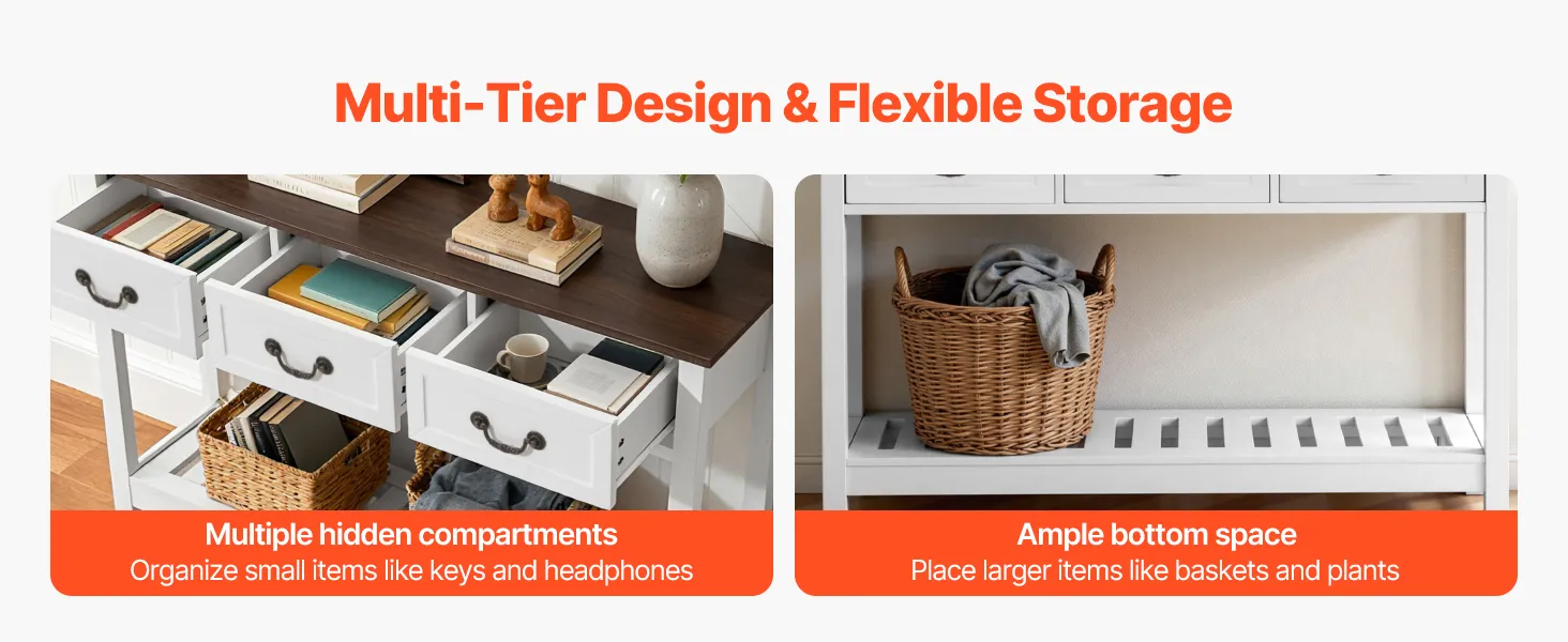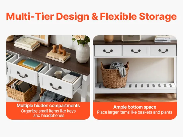 Il tavolo consolle stretto offre uno scomparto nascosto facile da aprire con un'ampia area di stoccaggio inferiore, che consente di riporre ordinatamente e di accedere facilmente agli oggetti di uso quotidiano, come libri, telecomandi, chiavi e giocattoli.