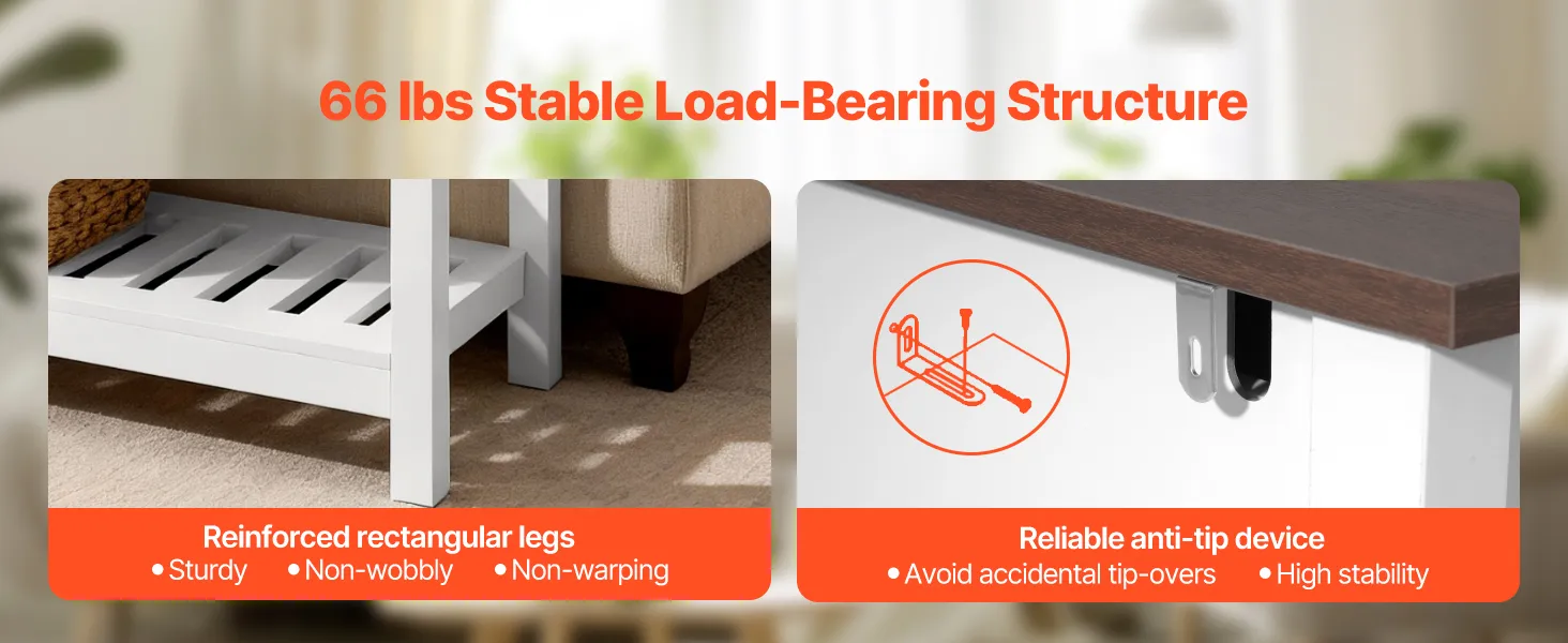 Grazie alla sua robusta struttura rettangolare, il tavolino rimane stabile e non traballa nemmeno quando si utilizzano piccoli elettrodomestici. Un dispositivo antiribaltamento integrato garantisce ulteriore stabilità; si prega di installarlo prima dell'uso.