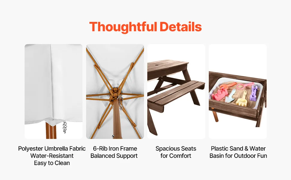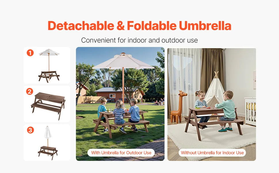 Utilizzo versatile: il piano del tavolo presenta un design rimovibile, che consente regolazioni flessibili per passare da un tavolo da picnic a un tavolo da sabbia o da un tavolo ad acqua, a seconda delle necessità