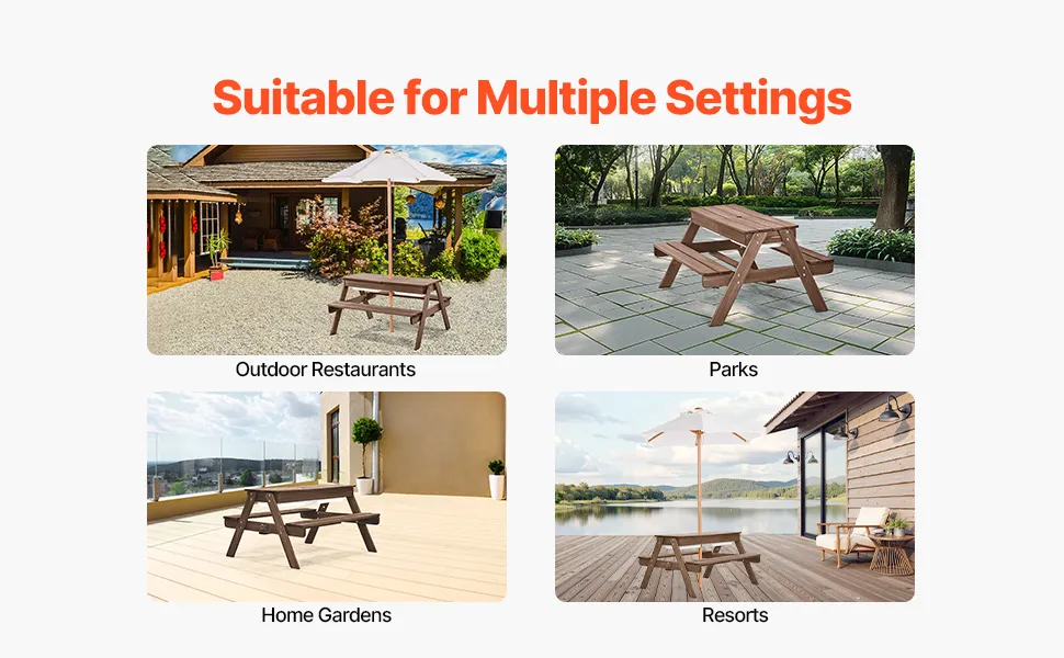 Applicazione multi-scena: questo tavolo da picnic per esterni si adatta a una varietà di ambienti, tra cui parchi, campeggi, resort, ristoranti all'aperto, scuole, giardini domestici e patii. Offre uno spazio per mangiare divertente e confortevole