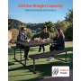 Stable & durable: The tabletop of the outdoor picnic table is made of high-density polyethylene, which increases its durability outdoors and offers excellent weather resistance. The tabletop can support up to 330 lbs (150 kg), while each seat can support 330 lbs (150 kg), providing comfortable and secure seating for 6-8 people.