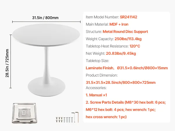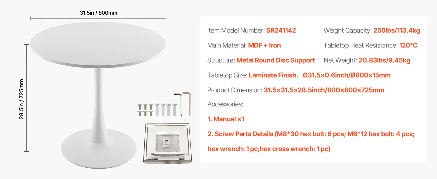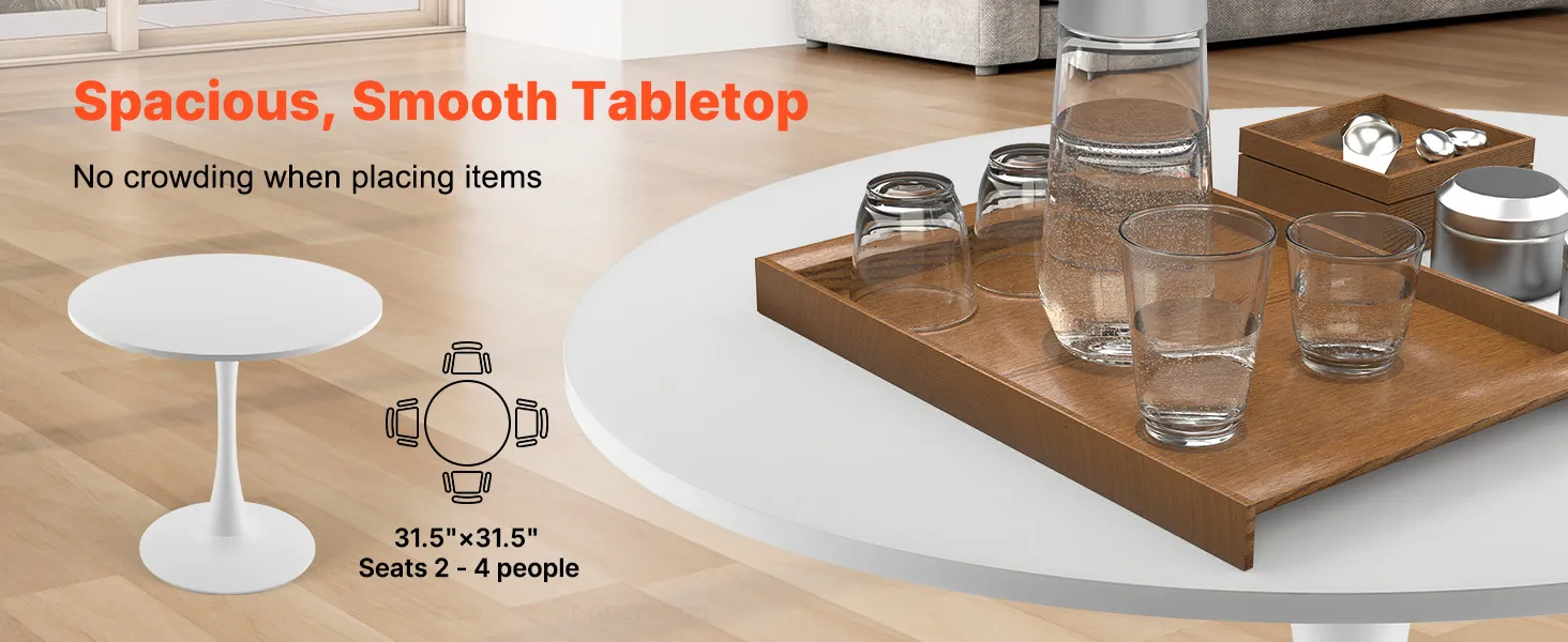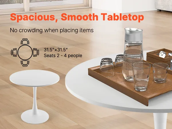 Tavolo da pranzo spazioso: questo tavolo da pranzo rotondo ha un diametro del piano di 31,5"/800 mm, con un design compatto ma elegante che può ospitare comodamente 2-4 persone, rendendolo una scelta ideale per spazi più piccoli