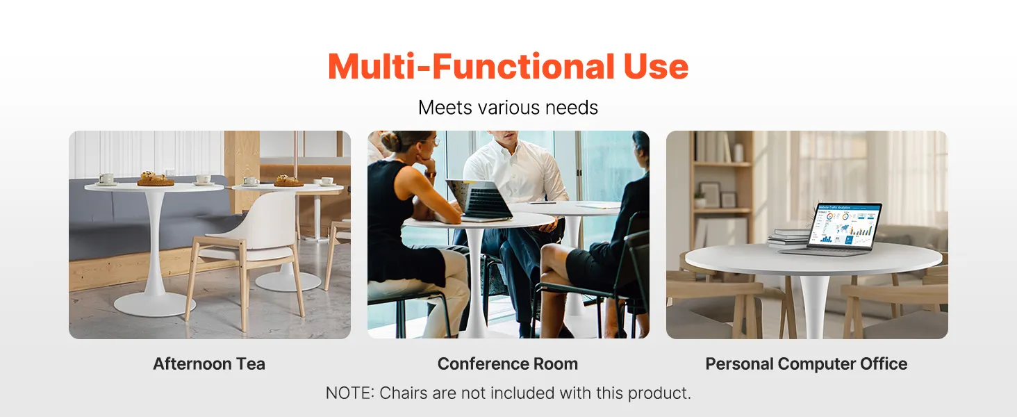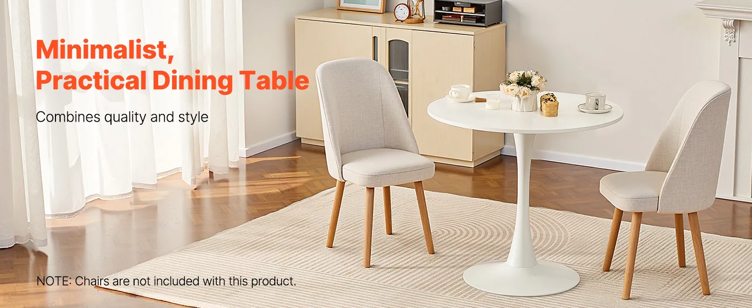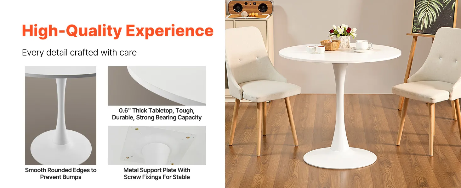 VEVOR Tavolo da Pranzo Rotondo da 800 mm Tavolo in Legno, Carico 113,4 kg Mobili Circolari Moderni, con Base a Piedistallo in Design Tulipano, per Cucina di Casa Soggiorno, Bianco, Solo Tavolo